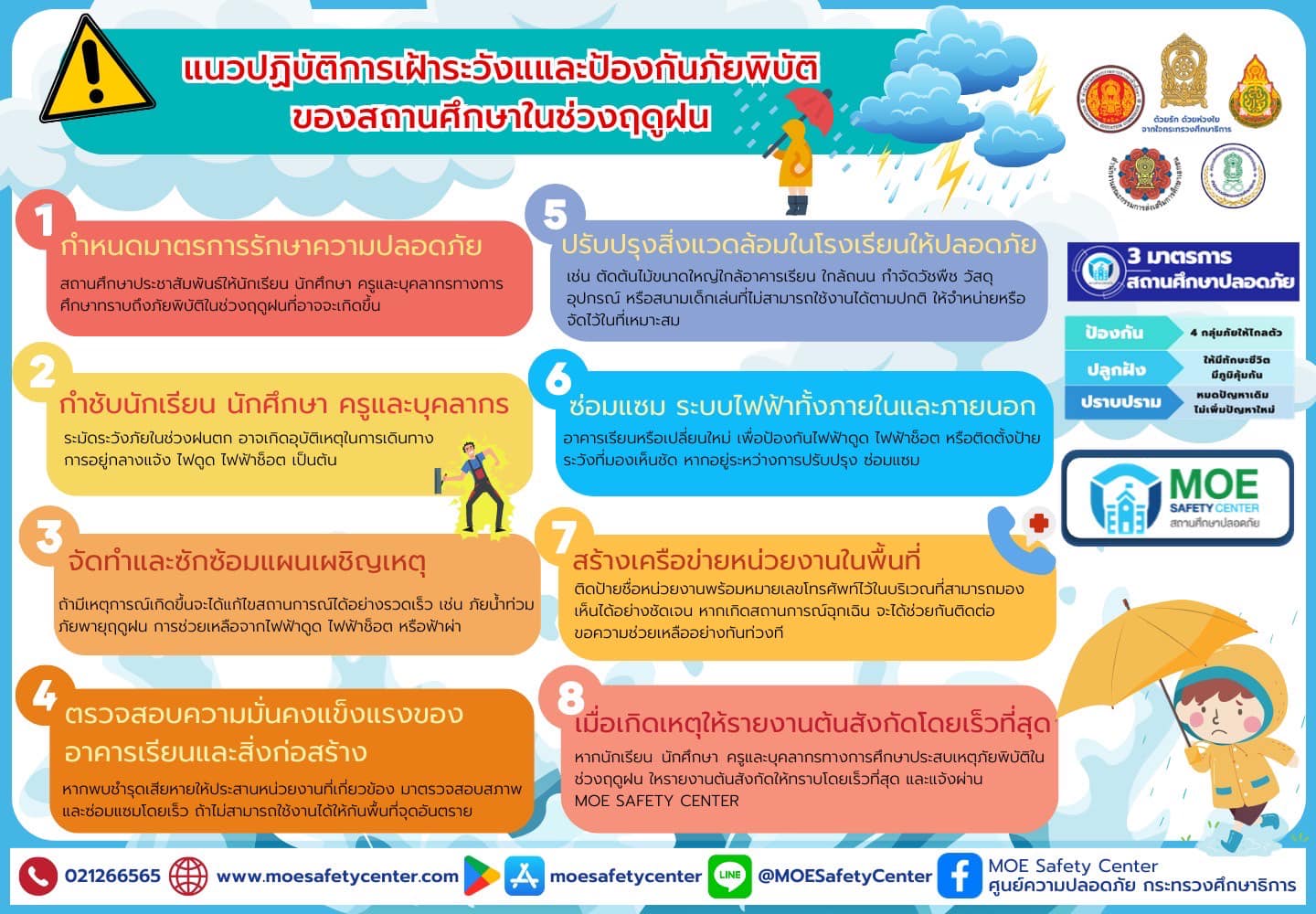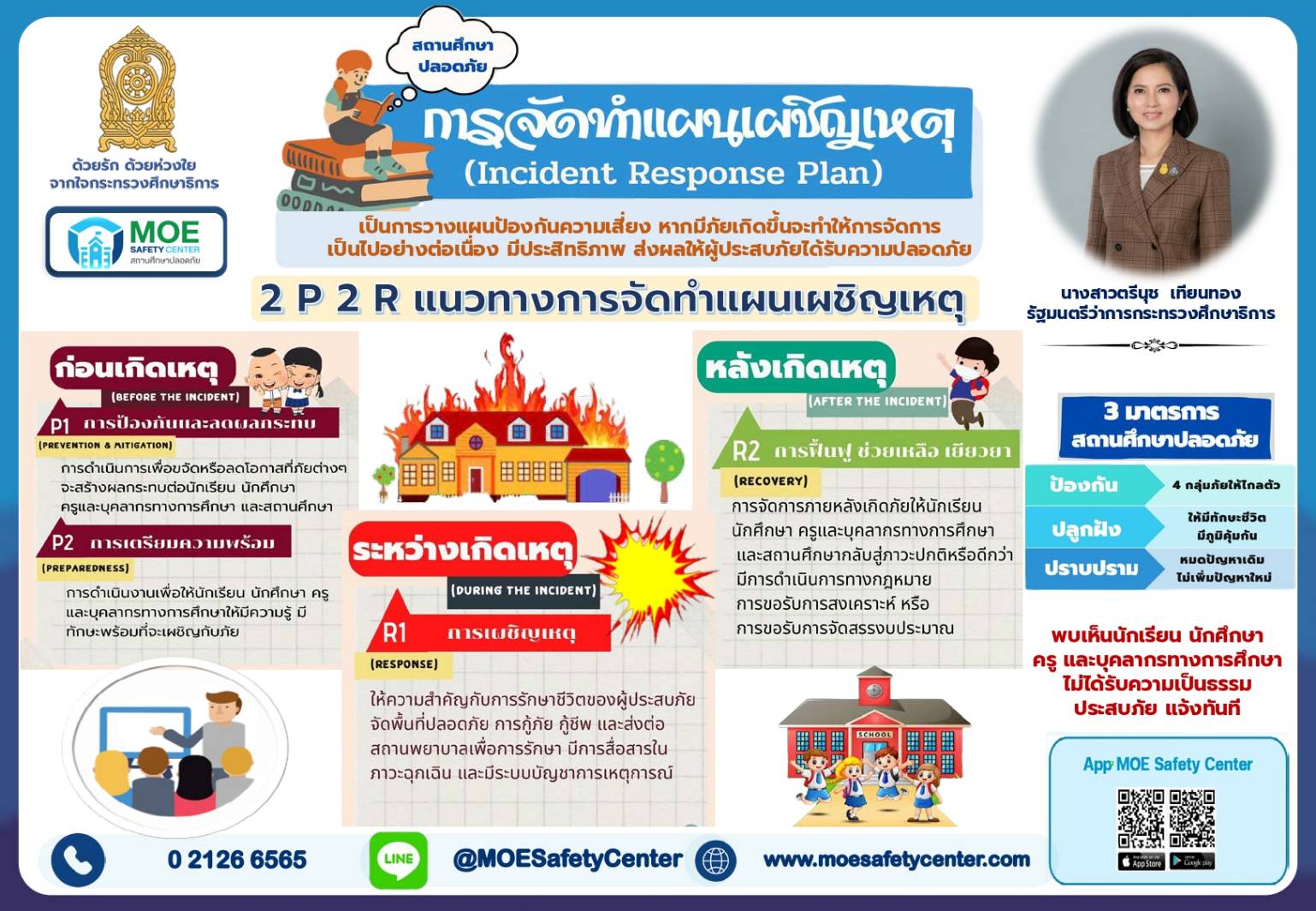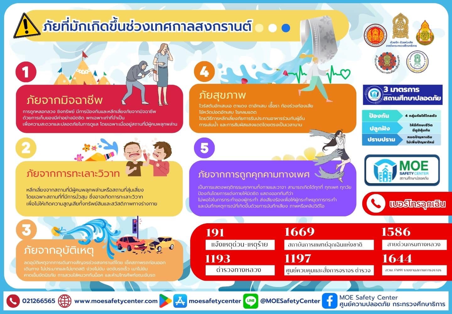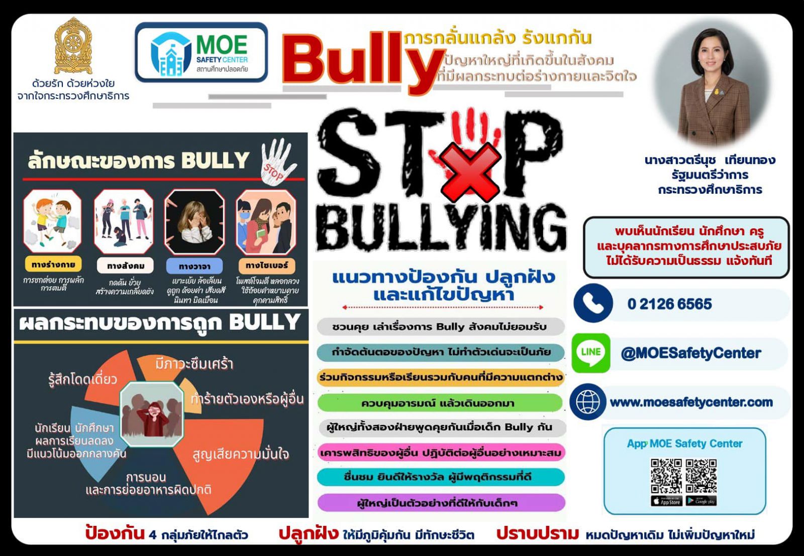 ประชาสัมพันธ์ช่องทางการแจ้งเหตุผ่านระบบ MOE-Safety-Center ซึ่งเป็นระบบมาตรฐานความปลอดภัยในสถานศึกษาโดยใช้หลัก Digital Based