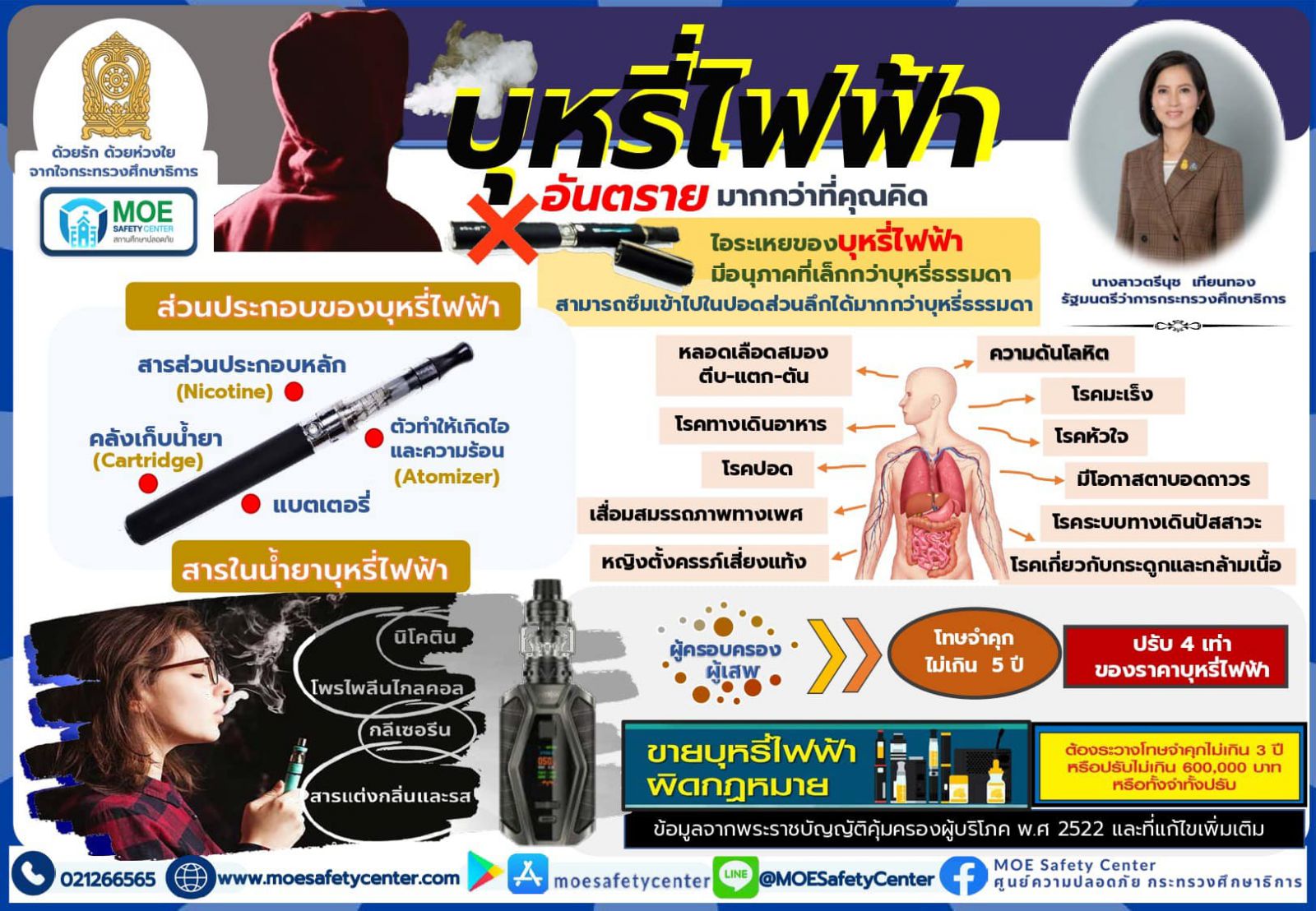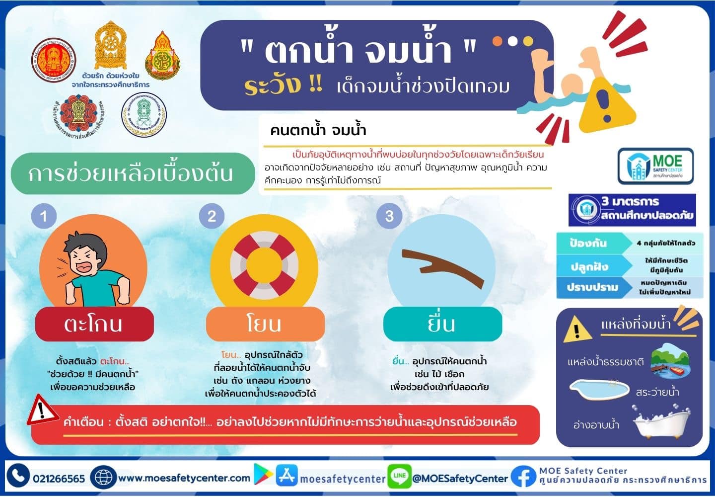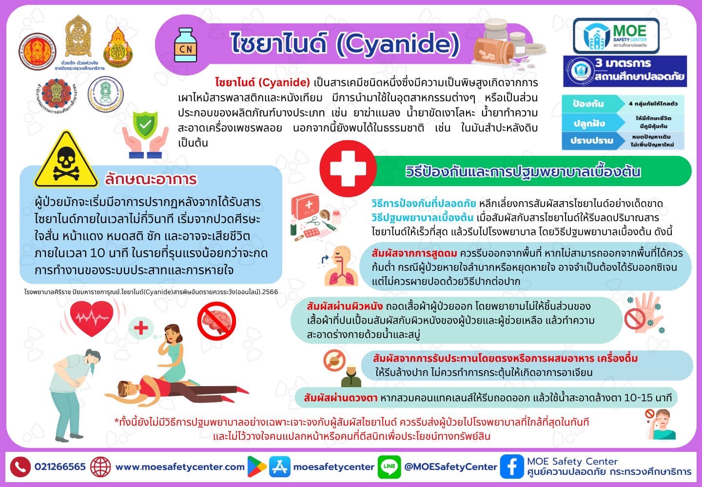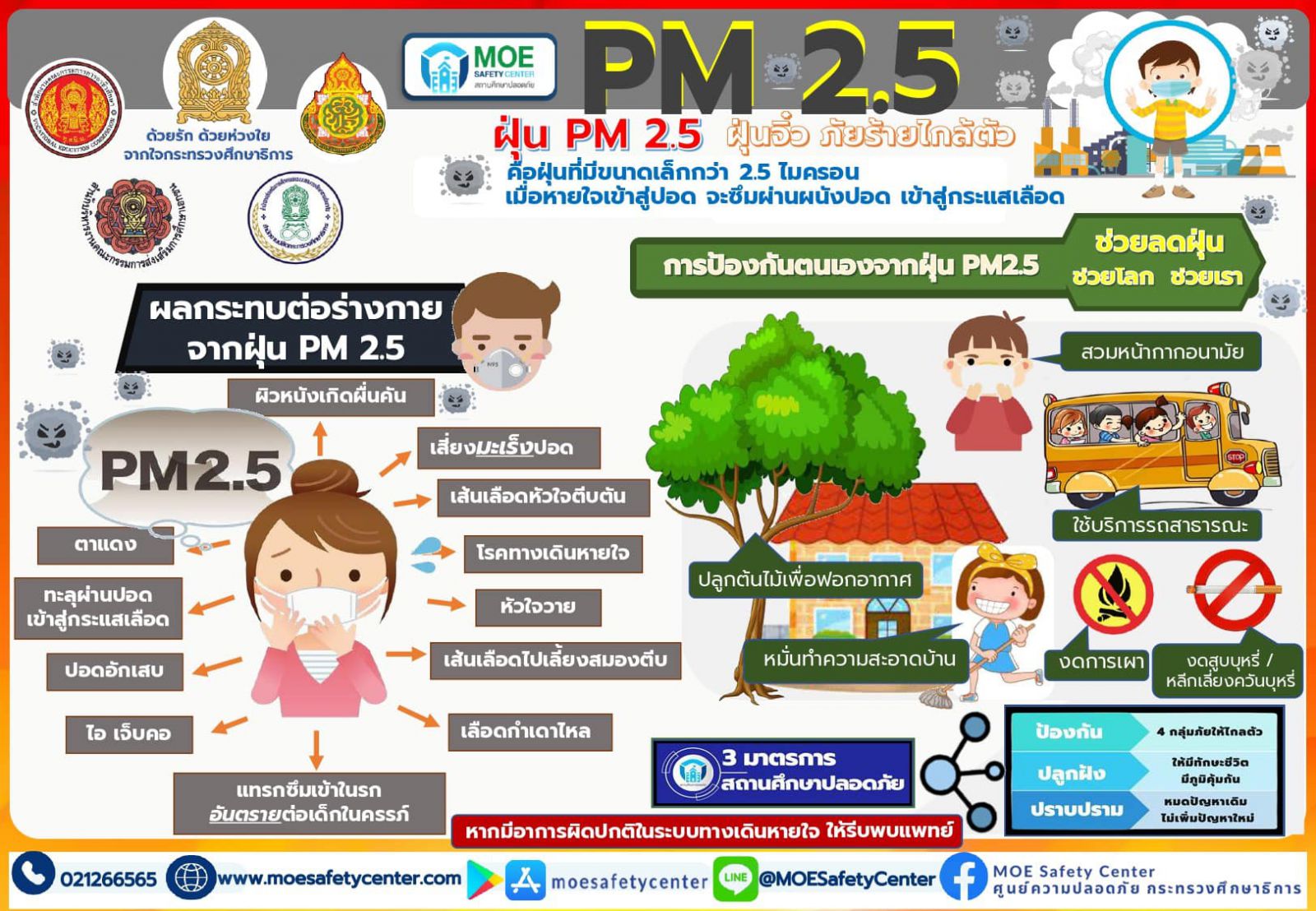 ประชาสัมพันธ์ช่องทางการแจ้งเหตุผ่านระบบ MOE-Safety-Center ซึ่งเป็นระบบมาตรฐานความปลอดภัยในสถานศึกษาโดยใช้หลัก Digital Based
